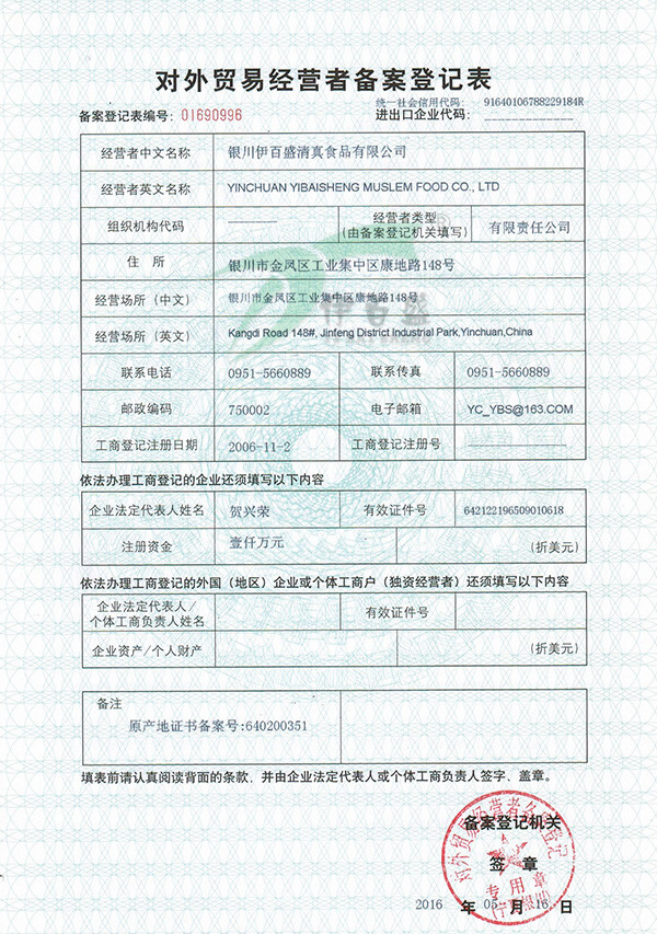 對外貿(mào)易經(jīng)營者備案登記表